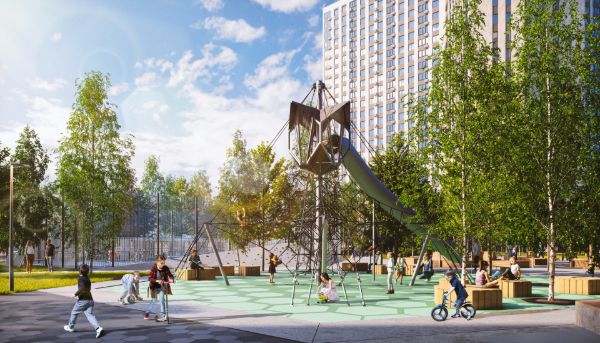 Для отдыха и прогулок во дворах застройщик предусмотрел детские площадки и лаундж-зоны, для спорта — велодорожки и площадки для спортивных игр.